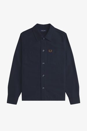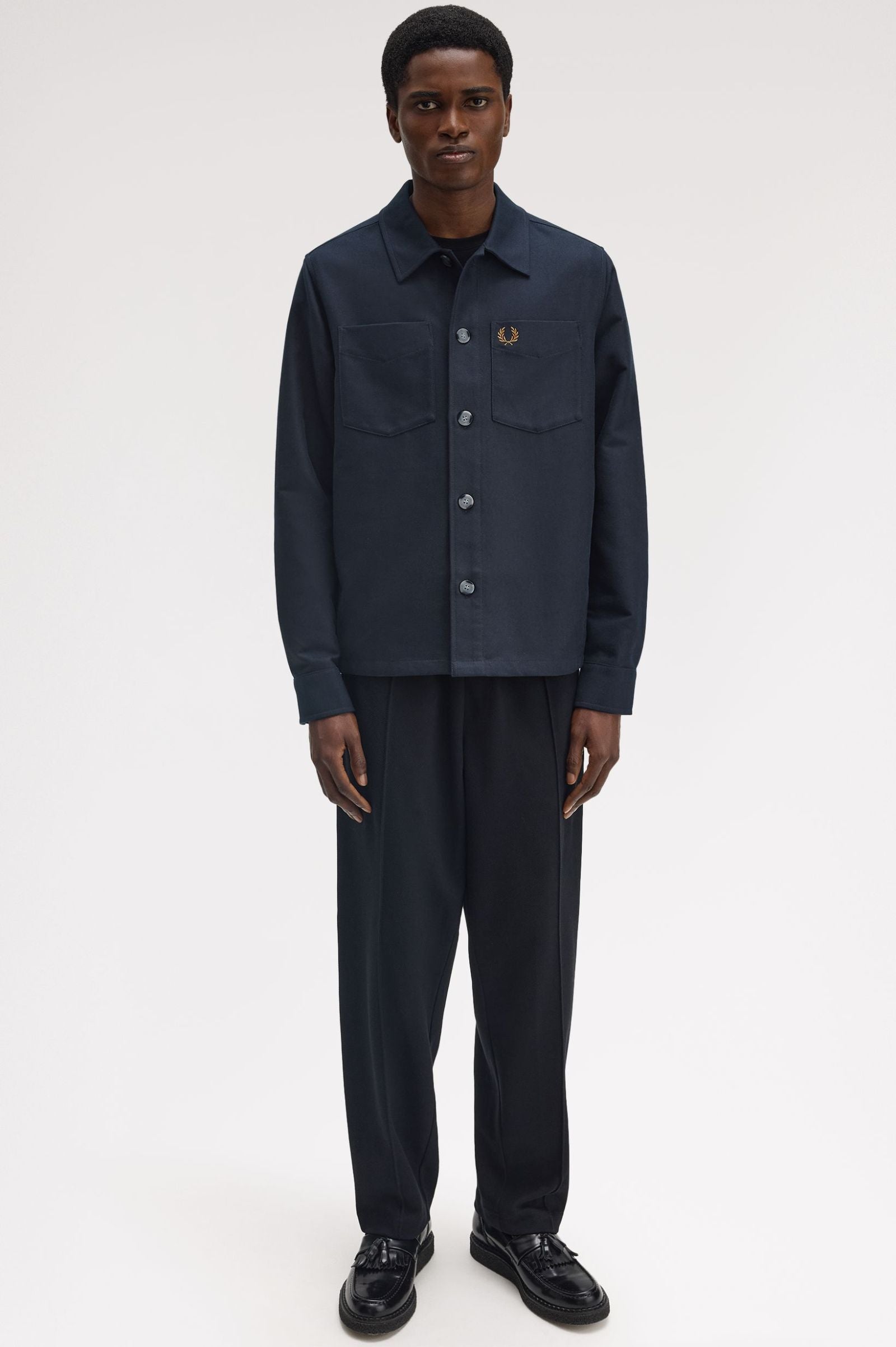 A heavyweight cotton twill overlayer with patch pockets and mock horn buttons. Heavy cotton twill fabric / Regular fit / Full button placket / Patch pockets with twill lining / Laurel Wreath embroidered logo on the left hand chest