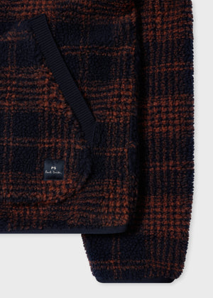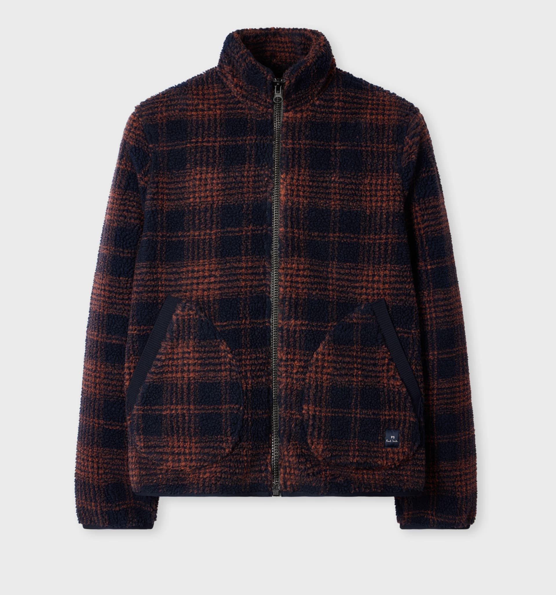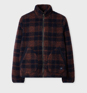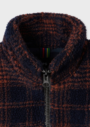 Made from 100% polyester fleece with a warm, textured finish, this jacket features a navy base with an orange check pattern. Complete with a full zip closure and funnel neck for protection from the elements, this jacket is finished with two patch pockets with rib-knit trim and grosgrain bound cuffs and hem.