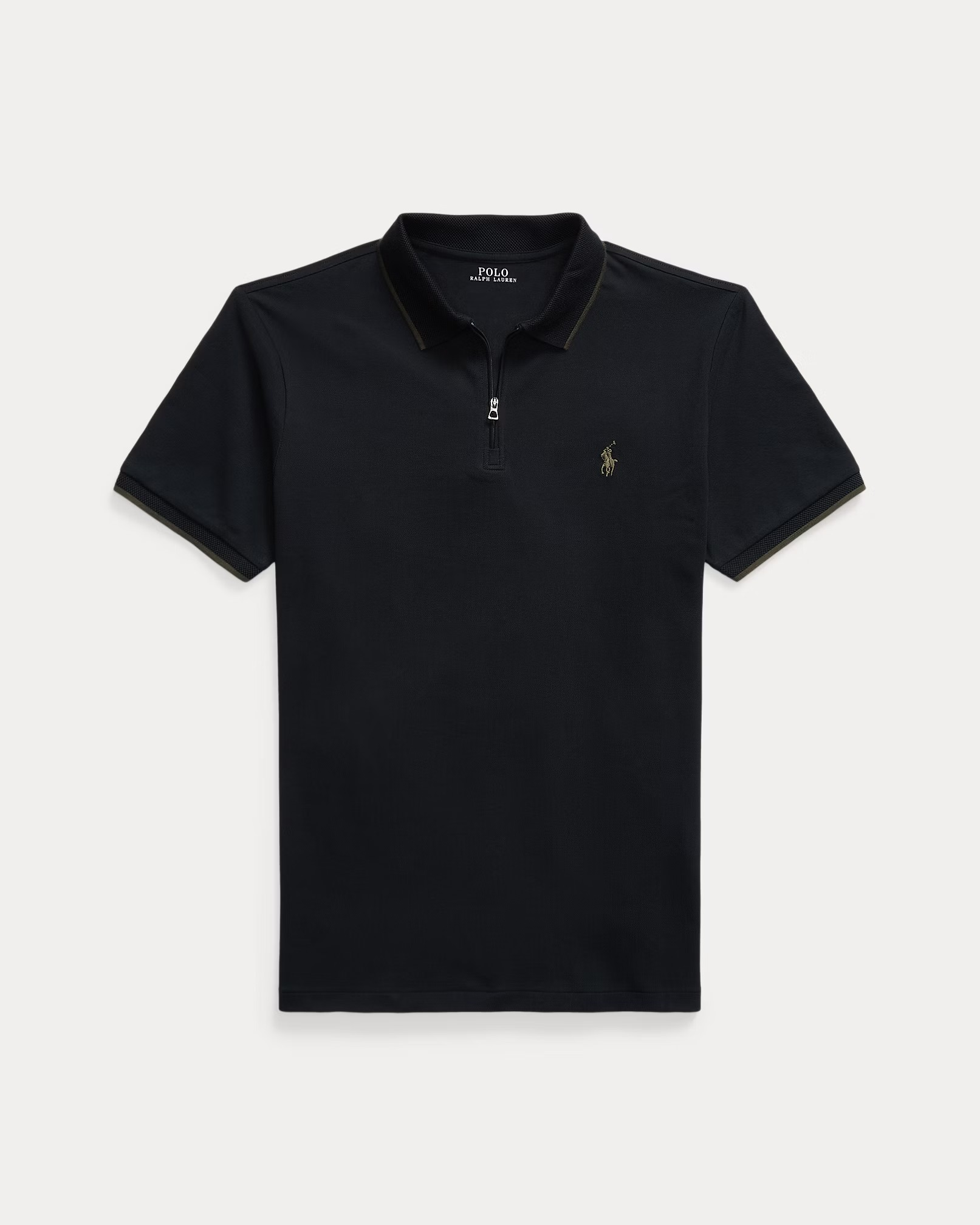 Custom Slim Fit Stretch Mesh Zip Polo Shirt - Black