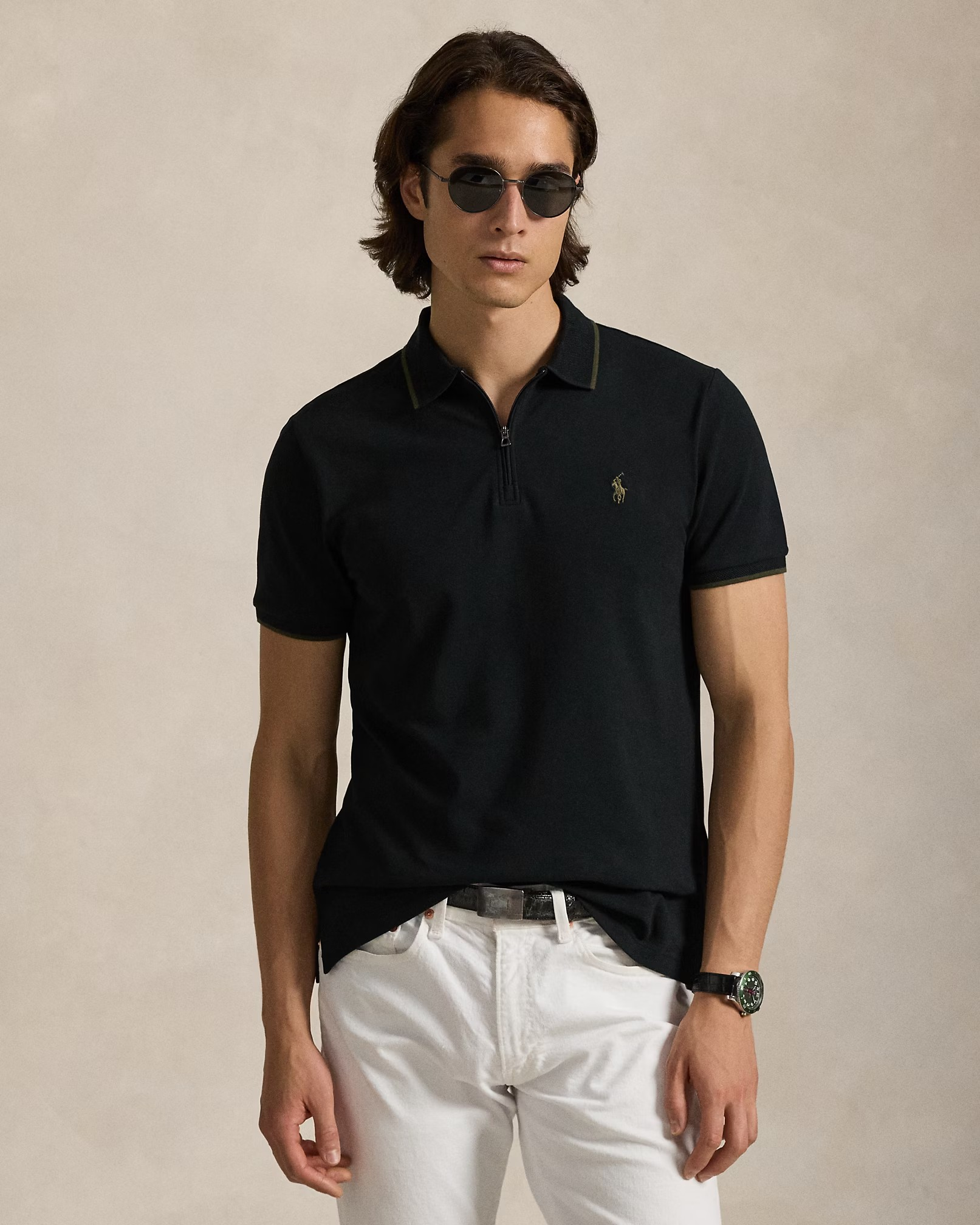 An American style standard since 1972, the Polo shirt has been imitated but never matched. Over the decades, Ralph Lauren has reimagined his signature style in a wide array of colours and fits, yet all retain the quality and attention to detail of the iconic original. This textured version includes a hint of stretch, allowing for unparalleled ease of movement and comfort.