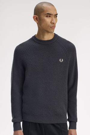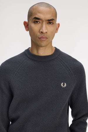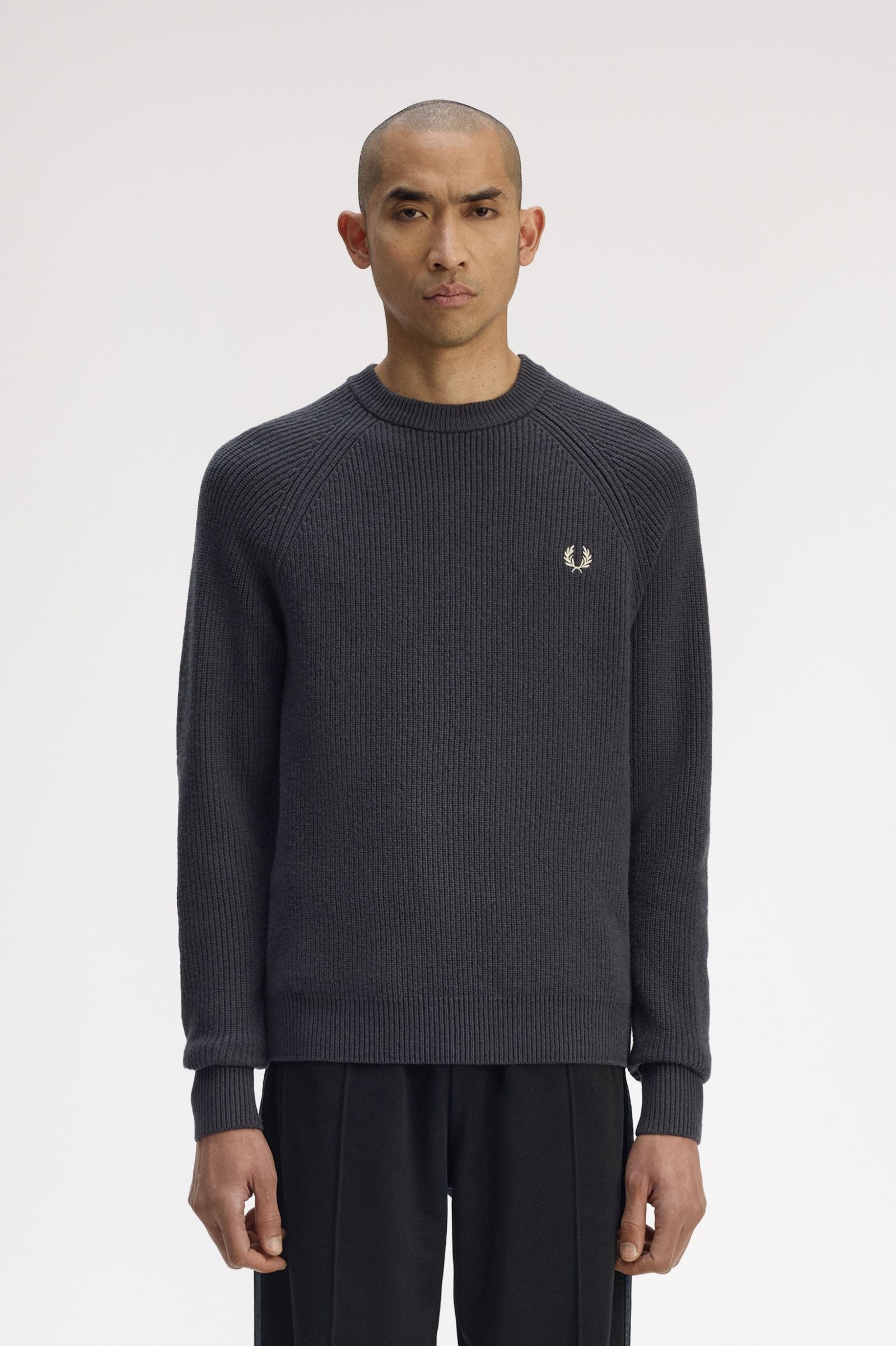 A lambswool knitted jumper with a textured knit throughout. RWS lambswool knit / Regular fit / Crew neck / Raglan sleeve / Embroidered Laurel Wreath logo to the left hand chest