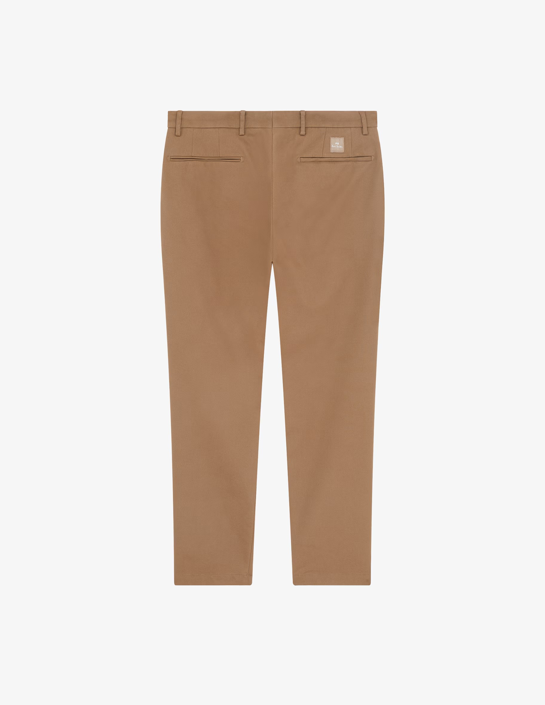Made from an organic cotton blend twill with added stretch for comfort, these tan chinos are cut for a regular fit. An ideal piece for everyday styling, these chinos are finished with our PS Paul Smith logo above the rear jetted pocket.