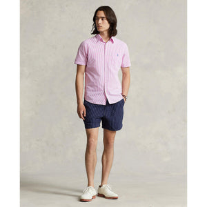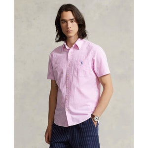 This short-sleeve shirt is made from seersucker cotton with Ralph's signature Pony on the chest.