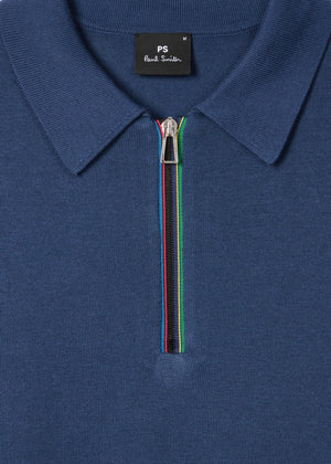 Made from 100% organic cotton this mid-blue long-sleeve polo features a half zip closure with vibrant 'Sports Stripe' detail. Cut for a regular-fit, this polo is finished with ribbed cuffs and waistband and offers an easy alternative to shirting..