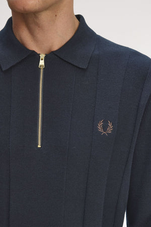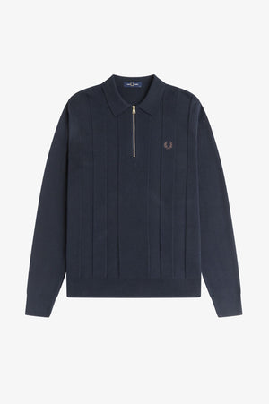 Tonal Stripe Knitted Zip Shirt - Navy