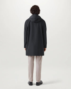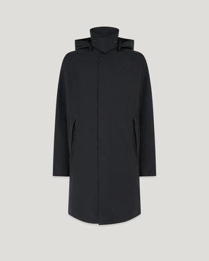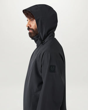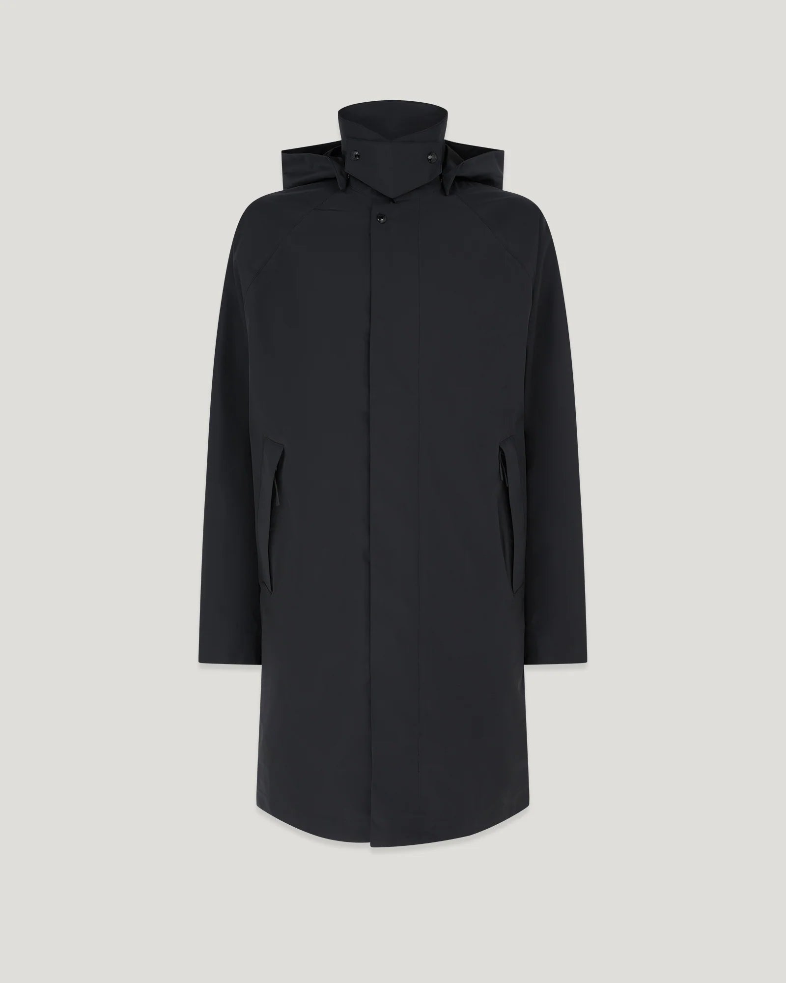 Meet the Force coat in black, your ultimate companion for showers. It's crafted from Belstaff's waterproof TriTech shell – a 3-layer bonded fabric with a smooth, polished surface and a crisp finish. It boasts a clean modern shape, relaxed fit for layering and point collar with detachable snapped throat latch.