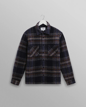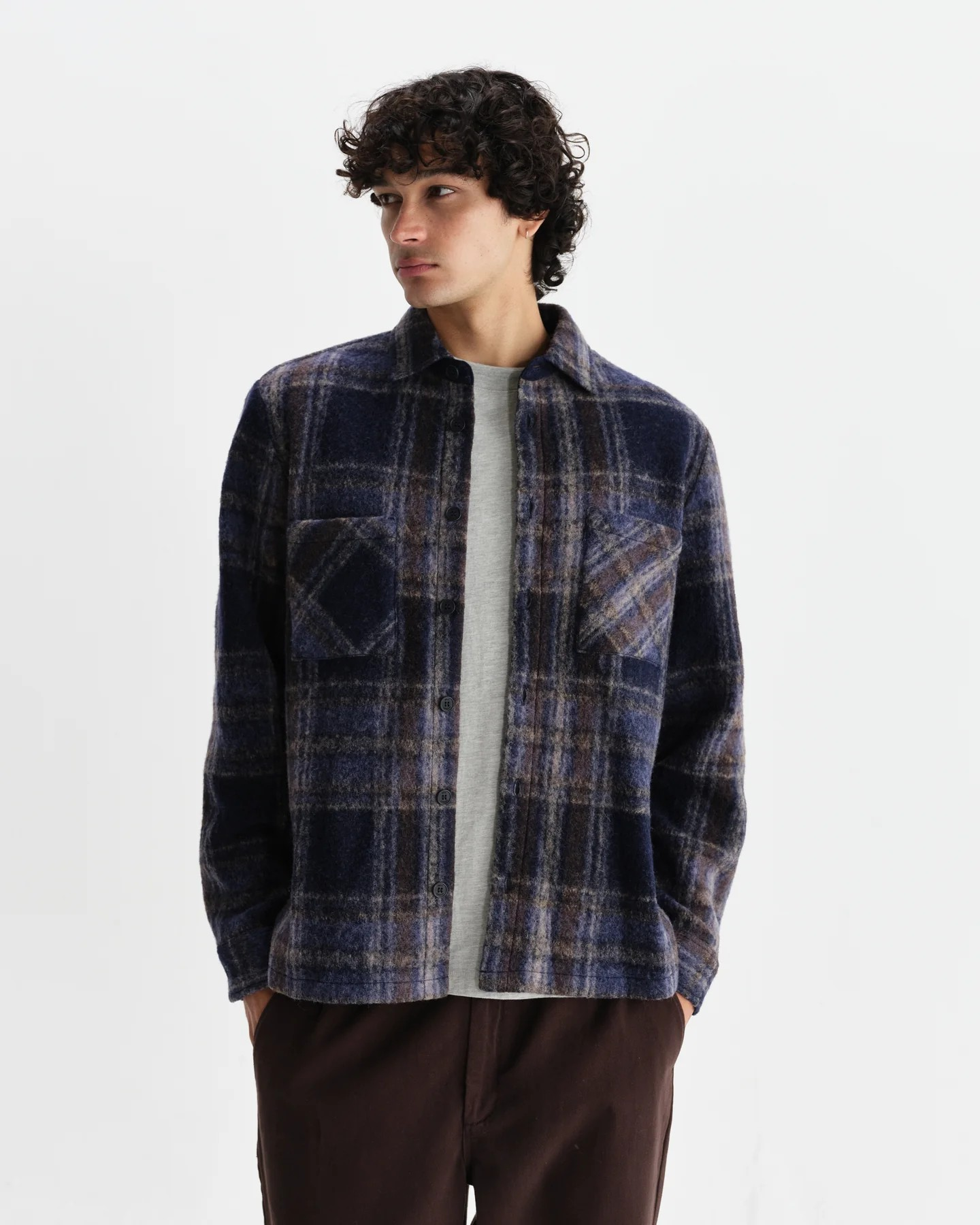 The Wax signature piece. The Whiting, our year-round staple, returns in a wool blend woven design that mixes navy, blue and grey yarns. Crafted from a fabric made sustainably by an Italian mill, this effortlessly wearable overshirt combines timeless style with responsible craftsmanship.
