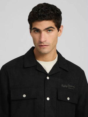 Regular-fit overshirt in wool-blend Melton fabric with a light feel. This piece is also ideal for pulling together layered looks and features a lapel collar and two breast pockets with buttoned flaps, a rounded hem and buttoned cuffs. Contrasting embroidered lettering on the chest finishes the design. Front press-stud fastening.