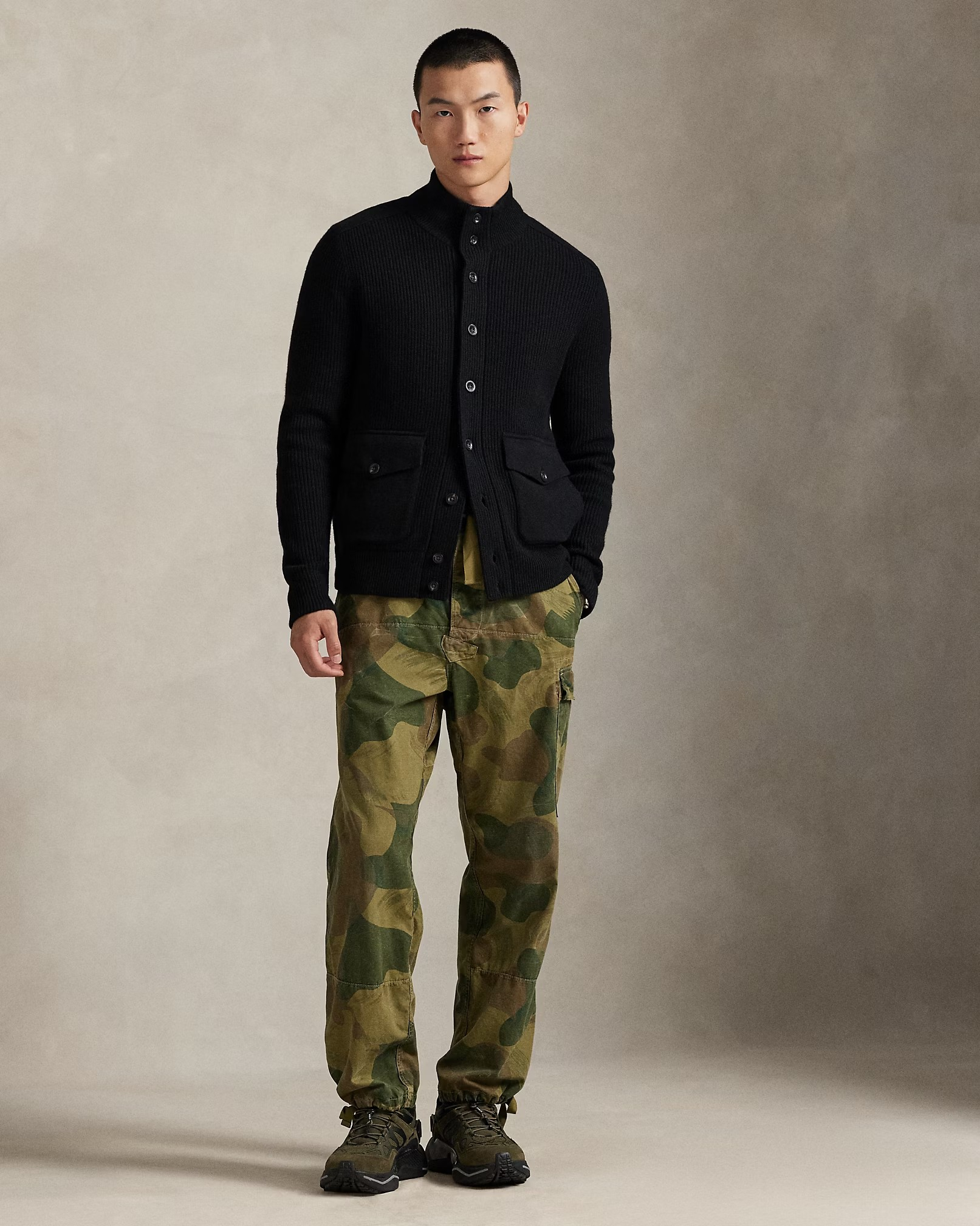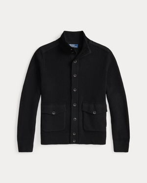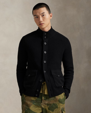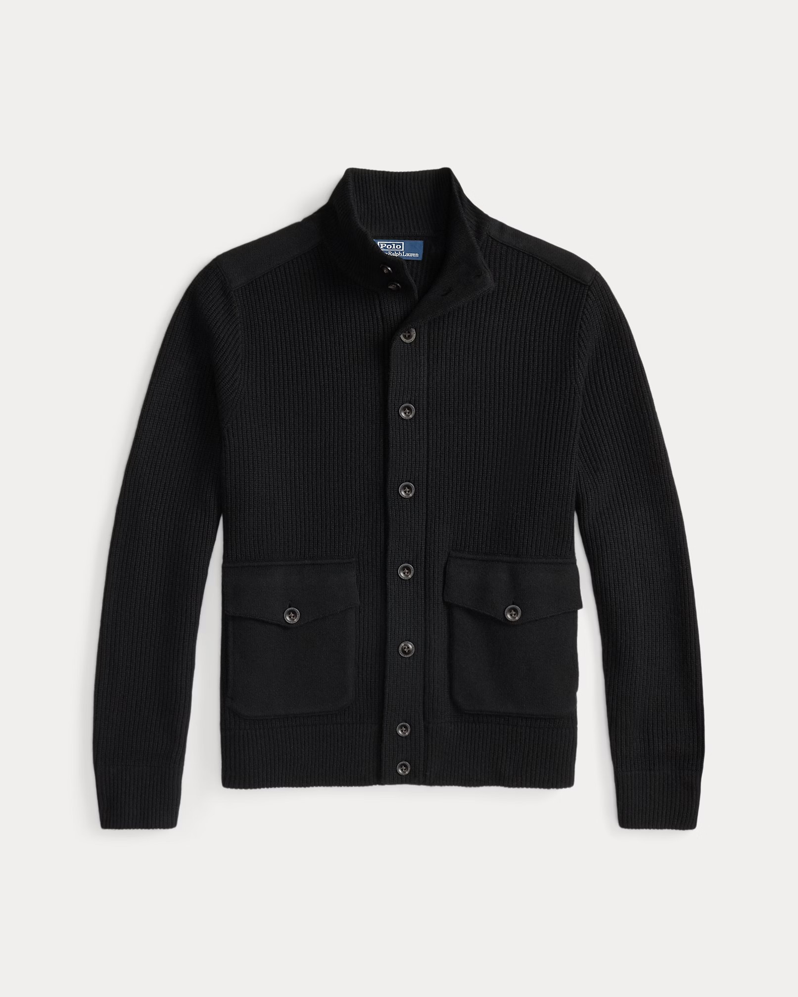 This chunky-knit cardigan is made from wool-blend yarn and finished with custom-developed buttons for signature Polo style.