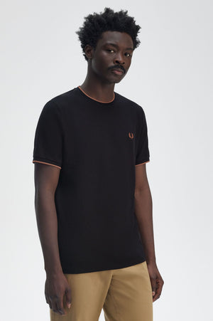 A crepe cotton piqué t-shirt. Regular fit, single-tipped crew neck, single-tipped cuffs and an embroidered Laurel Wreath insignia on the left breast are all features of this crepe cotton piqué t-shirt