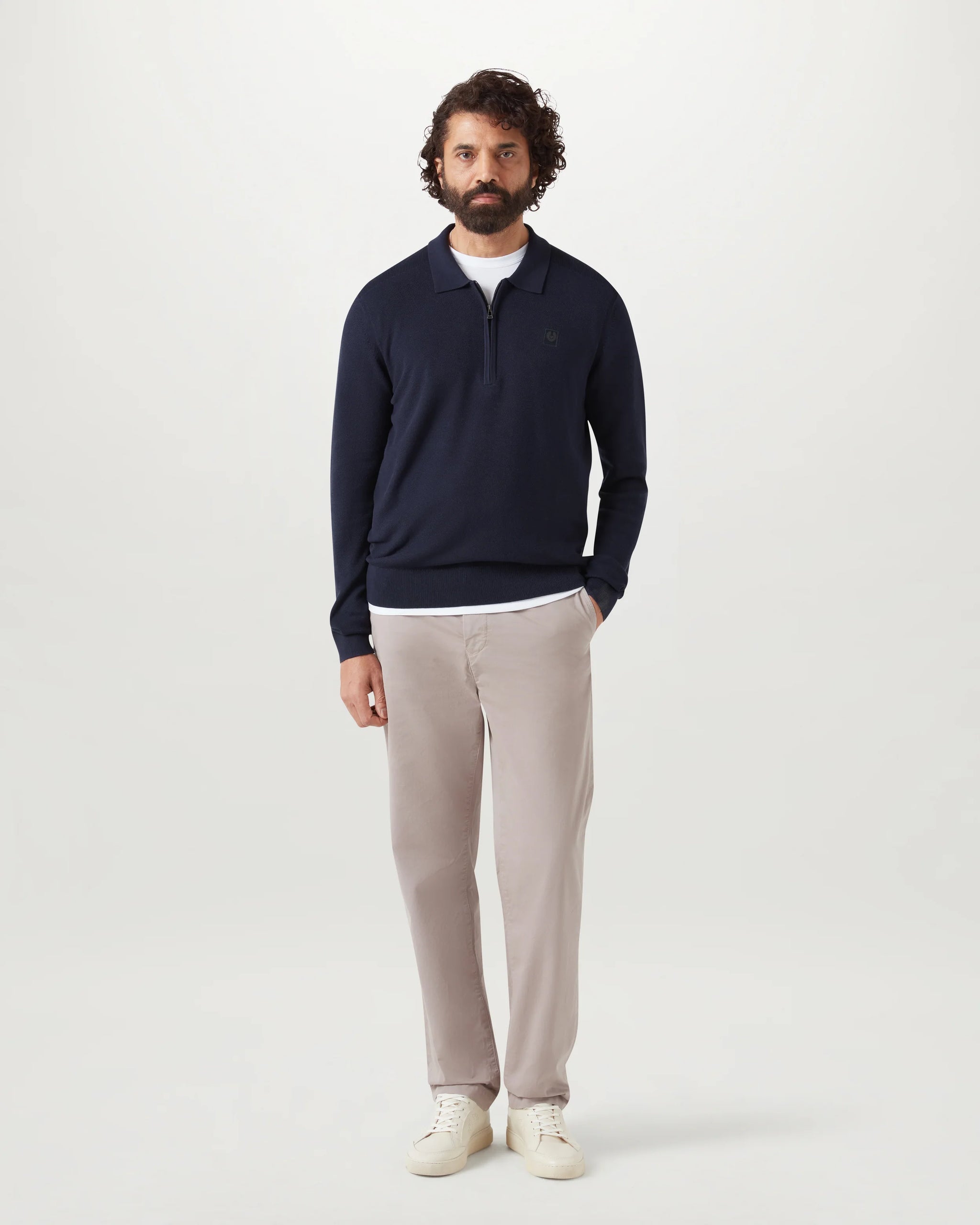Crafted from a luxurious lightweight cotton silk blend, the Drift knitted polo in Dark Ink offers a sophisticated spring-summer look. Finished with a classic polo neck collar and button detail, this is the perfect blend of vintage character and modern style.