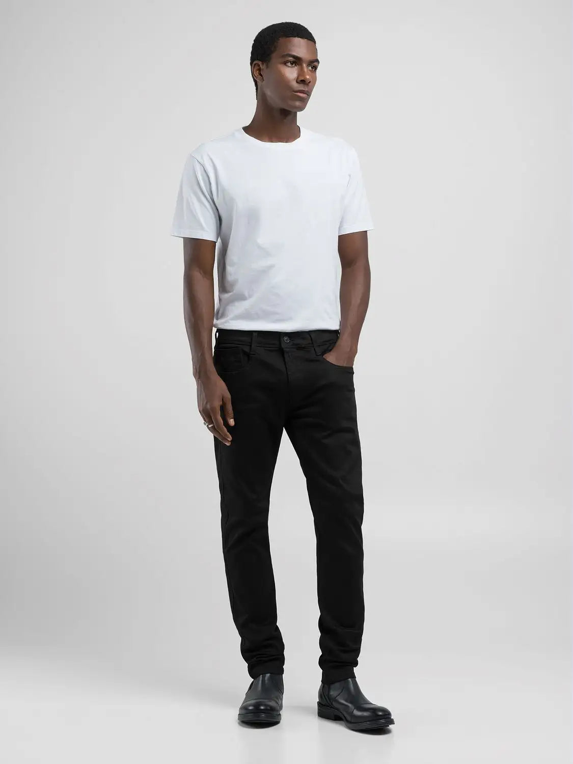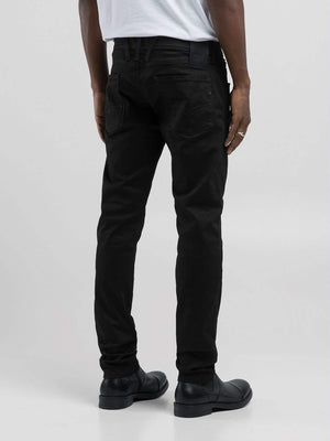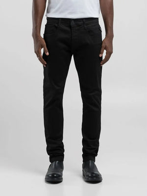 Slim-fit jeans with a regular rise and a loose leg that tapers toward the hem to offer a comfortable fit. This piece comes in black11.5-oz Hyperflex Re-Used stretch cotton-blend denim overdyed in black with a raw rinse wash and dry finishing on the mannequin. The coin pocket and back pockets have our iconic gull-wing stitching, one of which bears R embroidery, while one of the front pockets features a small branded insert. Zip and button fastening.